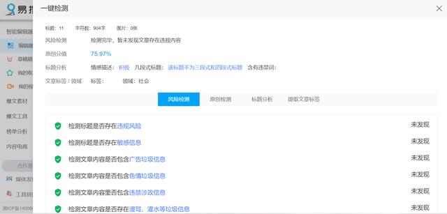 最后,我们有时写时事热点类文章,难免会参考别人的。这里提醒的是,我们可以跟踪别人的热点,但是文章的观点必须是自己写的。文章完稿后,怎么确定这篇文章的原创度有多高呢?