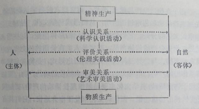 这个图示只是表明,人类的实践是人与世界的关系结构,是“自然一人”系统的运动,它内在地包含着认识关系、评价关系和审美关系,它既是物质活动的过程,又是精神活动的过程。人类的一切活动领域、活动方式及其一切创造物,都可以在这个系统结构中进行考察,都应该把它看成人与世界、精神与物质统一的过程或形式。我们这个世界,决不是精神与物质两极对立的世界,决不是人与自然互相隔绝的世界,而是人的活动系统。正是由于人的活动,人的社会性实践,世界才完成了自为的统一,成为人的对象世界,人的实践的舞台。因此,我们已无法把这个人的对象世界的一切简单地归入人或自然,精神或物质两极对立的范畴中,去作一种非此即彼的判断,而只能从人的角度去理解它们。