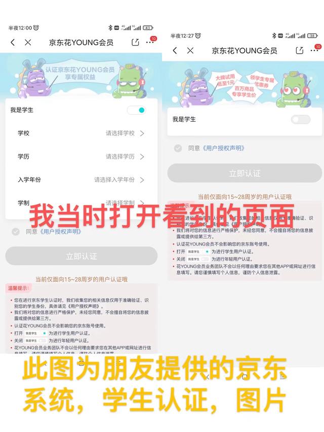 她说,这个因为是银保监会和银联联合要求他们京东限期关闭学生认证的。因为您已经不是学生了,可能年龄已经超出了教育部18-25周岁法定学生标准,所以要关闭学生认证这个我是学生选项,您操作一下,很简单。就取消掉我是学生选项就可以了。