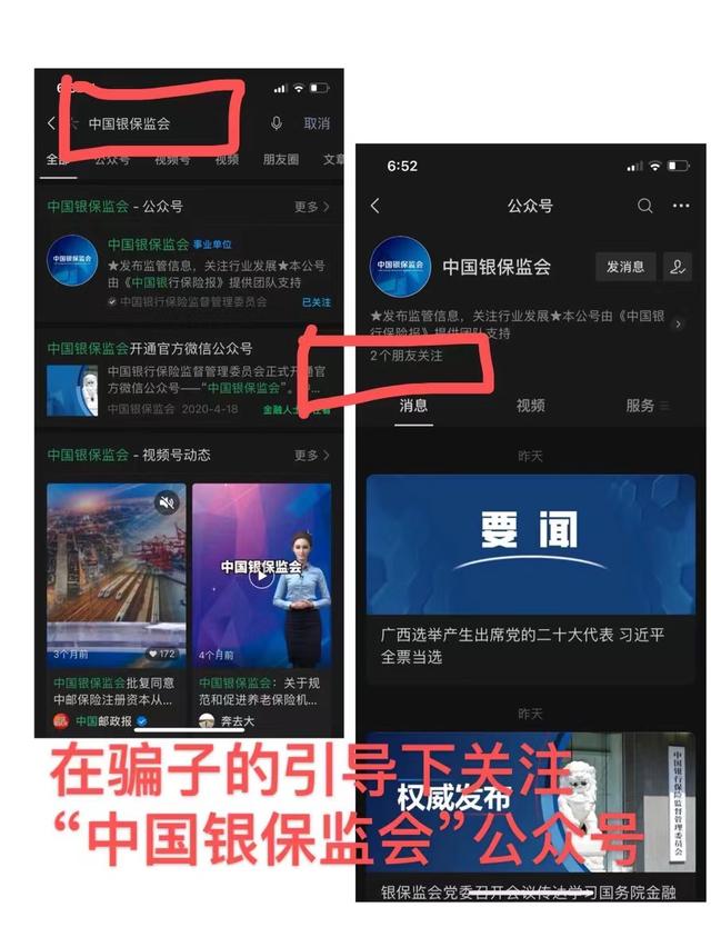 第二步:登录手机微信,当中搜索“中国银保监会”公众号,点击关注(我搜索关注以后发现显示我有几个朋友在关注,再一看对方以往的信息,都是很严肃的新闻结构那种,同时查看了公众号的注册日期等相关信息,打消了顾虑;)