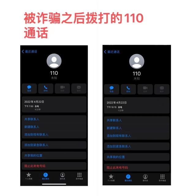 通话110以后,对方让我等待接听反诈刑警给我的来电,等到了大概晚上10:15分,依然没有接到来电!这2个多小时的时间,我用朋友的手机不断地拨打被诈骗的银行的客服电话,一直转接不到人工客服!理智告诉我,不能就这么眼巴巴地坐等着,抱着也许还能被追回的侥幸心理,又一次拨打了110。警察给我回电,打我的号码一直不通!我报警以后,一定不会错过信息,手机一直是拿到手边并时刻看着,并没有收到来电,而且通讯录也没有未接听来电!后来得知,我的手机被设置了呼叫转移。