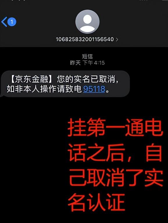 挂断电话之后我自己登录了我的京东号码,验证了一下我是否有过实名认证,确实有,之后马上操作了取消了实名认证,取消时候页面上显示的,内容意思就是“京东金融的相关借款的功能就会关闭之后再重新实名以后就不能使用”,考虑了我没有贷款或借款需求不能用也无所谓。就取消了,之后随即又注销了京东商城的账号。后来手机接收到来自京东金融的一条短信我的实名已取消,稍稍又放松了一点。(此番操作3分钟)