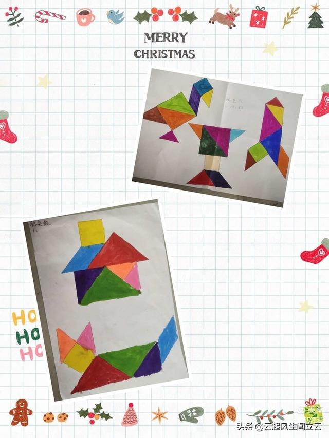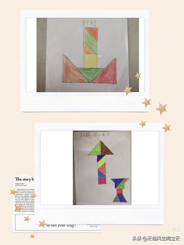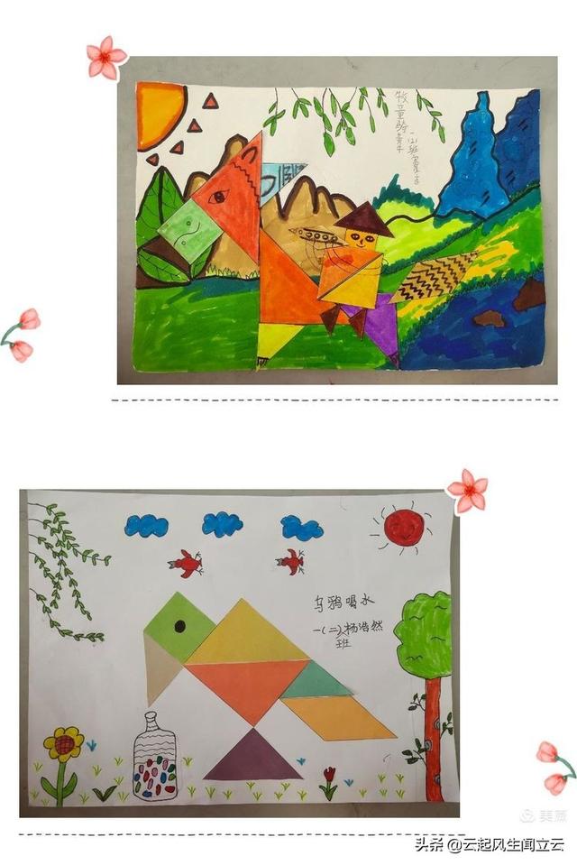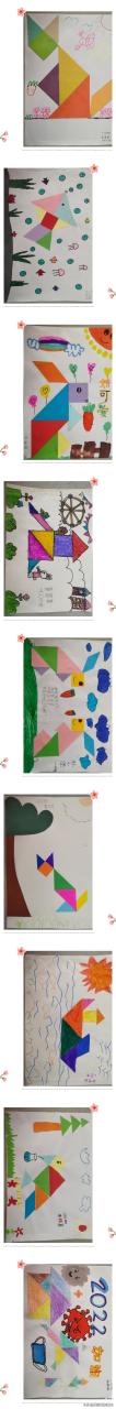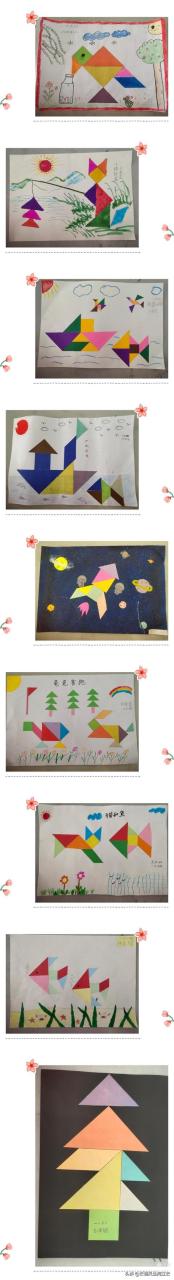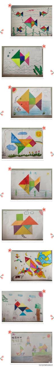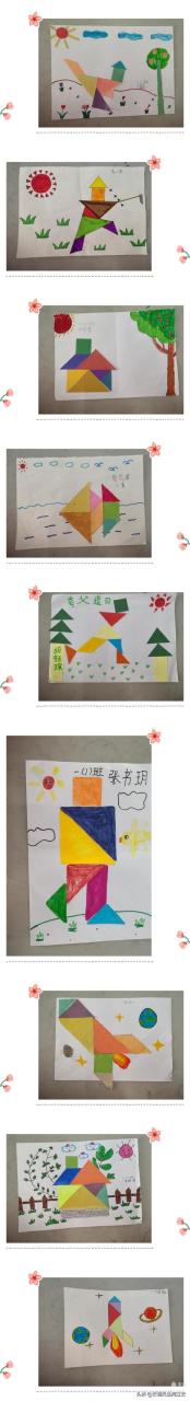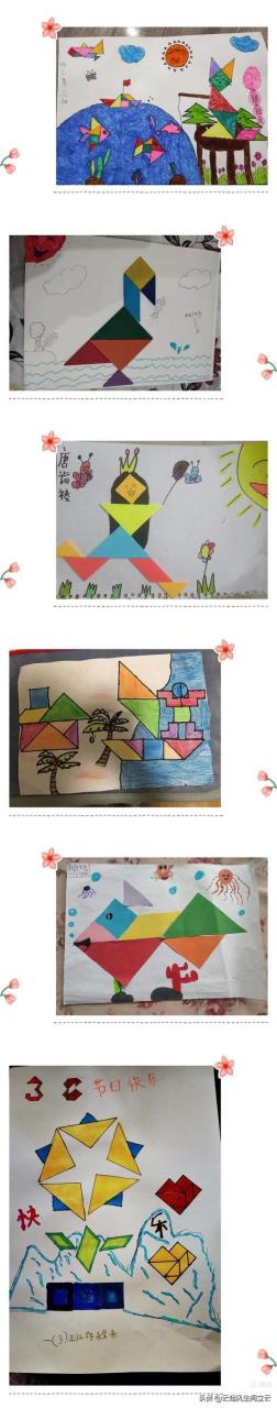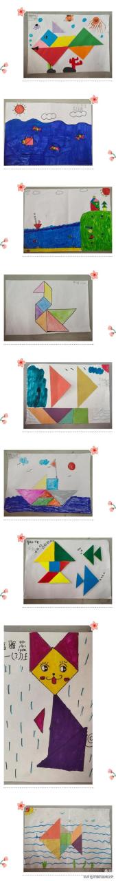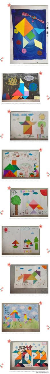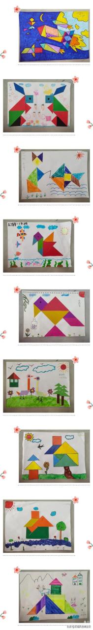 这些简单的图形在孩子们的巧手中,变成了一个个生动的故事。看着这一幅幅图片,我们不仅仅是在欣赏图案,更是在倾听孩子们心中的童话!