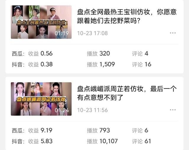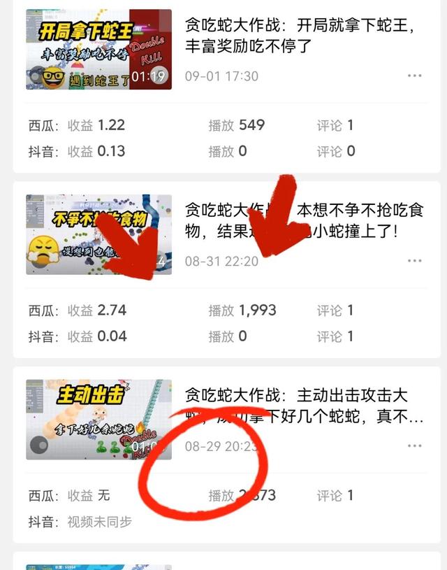 8月29到8月31这个期间是中视频审核阶段,我心情都是非常的忐忑,又害怕审核不过去。庆幸的是我审核通过了。8月31号发的视频也有了收益。8月31号之前发的不计算在中视频计划收益之内,所以又是从头再来的挑战。一块两块的收益也还行。想通过中视频计划的伙伴,可以试试游戏这个赛道。可能是我厌倦玩游戏发视频了吧,也不想更视频了。我想换一下赛道,我然朋友教我玩王者,但是这个收益并不乐观。我就停更了几天。想找一下素材比较多的,然后我转到了盘点类赛道了。这个看着播放量也还不错,关键的是我还同步到了抖音,抖音的播放量比西瓜的播放量高很多,所以我一开始关掉同步抖音是个错误的想法。