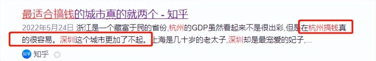 网上有个段子,其他城市的女孩,出去聚会讨论的是对象、美容、明星有什么瓜;但是深圳和杭州的女孩,喜欢讨论买房、炒股、基金或者搞什么副业,满脑子都是搞钱。在知乎上甚至有热门话题,不少网友都觉得,最适合搞钱的城市,一个杭州、一个深圳。
