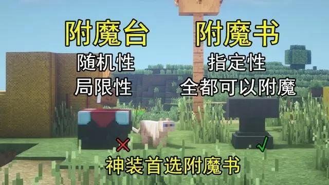 正如上面所提及的那样,附魔的途径只要有两种:附魔台和铁砧,前者更多需要的是运气,其次还需要有大量青金石经验的储备,而后者的话,更看重的也是运气,因为附魔书本本不一样,有的宝藏型附魔书还只会刷新在固定场所中。