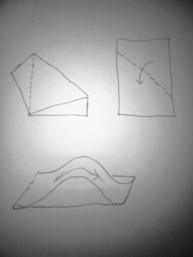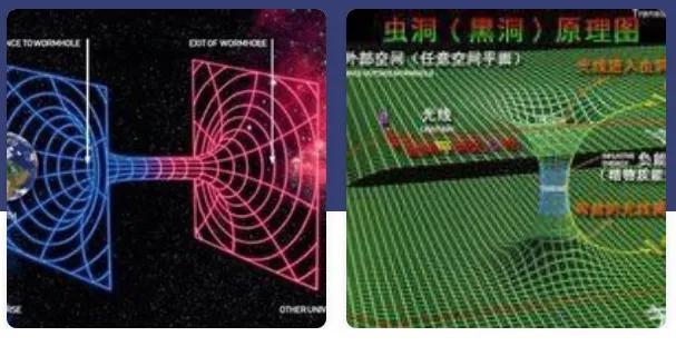 现在拿起桌上的一张白纸,把它对折,使得它的左上角角和右下角相重叠,我们就可以发现在这两个角上,二维空间连在一起了,整张纸形成扭曲的形状,而对于二维空间的生物来说,右下角的物体可以瞬间穿越到左上角,也就是形成了他们的“维度旅行”。还有一种方式,你再拿一张纸,把第二张纸的一个角,与左上角重合,第二张纸的另一个角与第一张纸的右下角重合,我们就可以发现,第二张纸相当于搭出了一个桥,二维生物可以从左下角进入到这个桥,然后穿过桥到达右下角,而对于底下第一张纸上的生物来说,它就好像穿越了一样。