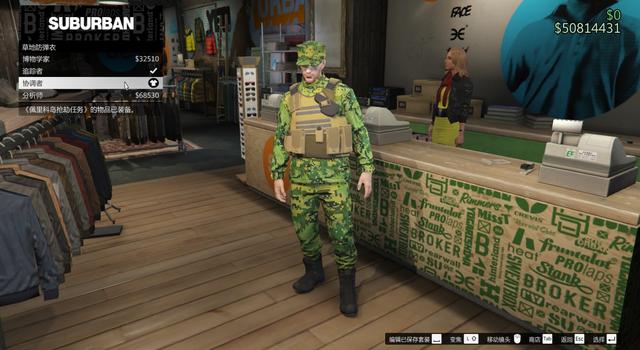 在前台NPC处可购买套装,选择佩里科岛抢劫,然后“草地防弹衣”这个分类下的都可以