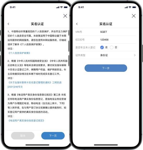 根据工信部发布的《工网安函[2022]35号》文件通知,在2022年9月30日之前,所有智能联网车辆的流量网卡都需完成车主信息登记,对于未完成实名认证的车辆网卡,移动运营商将按照法规对联网功能做出限制,为避免车主朋友们用车受到影响,我们联合运营商提供线上认证功能,帮助大家更便捷的完成此次实名认证。