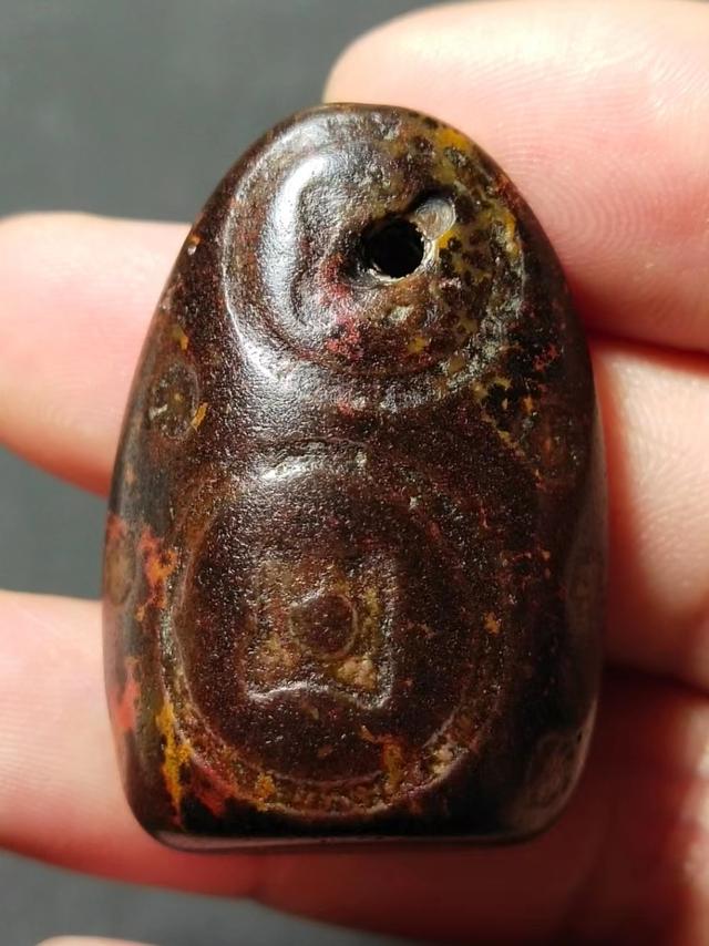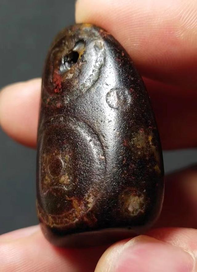因为此珠来自距今万年左右的象雄时期,也就是当今成熟的天珠文化在其久远的象雄时期天降石萌芽阶段就有了完整的代表增益财富的天珠图腾符号,并且神奇的保存至今,貌似我找到了财神天珠的老祖宗!