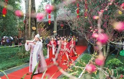 成都在春节习俗当中有一项是全国唯一的习俗,就是正月初七人日游草堂。我们古人认为万物有灵,那就有若干的神都需要崇拜,很多牲畜都是有生日的。正月初一是鸡的生日;初二是狗的生日;初三是猪的生日;初四是羊的生日;初五是牛的生日,初六是马的生日;初七就是我们人的生日;初八是五谷的生日。