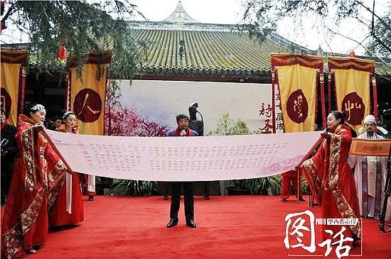 为什么成都能一直保持这种传统文化呢?这里面有一个故事,诗圣杜甫住在成都的时候和许多文人骚客进行诗歌互动,这个活动称为“唱和”就是你写一首诗送我,我写一首诗送你。其中有个非常著名的边疆诗人叫高适,他们留下了大量的优秀诗集,这些诗集中多次提到在人日这天诗人们要聚会,要饮酒,要交流写诗的心得。清代成都有一个著名的学者、书法家叫何绍基,特别的重视以杜甫为代表的的诗人们的这种活动。有一年何绍基回成都,他有意在路上多耽误了两天,一定要等到正月初七这一天才进入成都城。他说这一天才是该进成都城的日子,这一天是我们对杜甫及高适的纪念。他把这件事写了下来,而且留下了一副有名的对联,现在还挂在草堂。“锦江春色公占却,草堂人日我归来。”