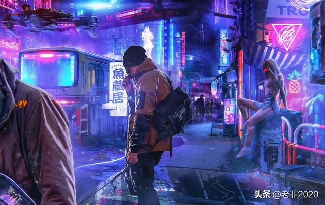 赛博朋克也是一种世界观——通常搭配色彩是以黑、紫、绿、蓝、红为主色调来描绘未来,建立于“低端生活与高等科技结合”的表现形式。