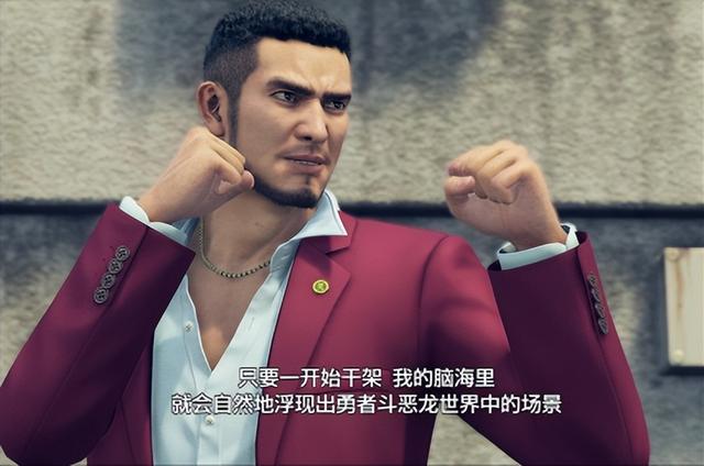 在游戏中,主角【春日一番】有着喜欢《勇者斗恶龙》系列的设定,并以此设定引入了春日一番眼中的”奇怪“的战斗画面还有他那来源于勇者的率性而纯真的心灵。本作依然讲述极道故事,探讨黑道人员的生存问题。剧情依然保持了横皮尔博格的风格,拥有很高的完成度和代入感,无论是开头时代剧带来的悬念,还是结尾突如其来的感伤,都让我们置身其中,引起共鸣。