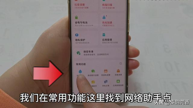 但是为了能彻底的关闭广告弹窗,我们还需要进行一项重要的设置,我们打开手机管家,在常用功能这里找到网络助手,点击进去。